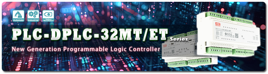 The programmable logic controller PLC-DPLC-32MT/ET Series developed by MEAN WELL, features software and firmware designed to comply with the international standard IEC61131-3. The series uses the Open PLC Editor programming software, supporting 5 programming languages, with a variety of library functions available for calling and online debugging. In addition, it supports the MODBus communication interface, enabling remote monitoring of on-site equipment operation and connection with other communication equipment.